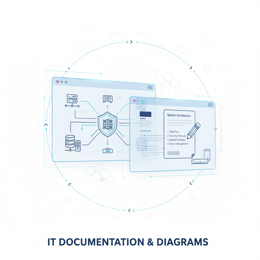 IT Documentation & Diagrams: We impower you with a comprehensive blueprint of your entire IT environment. Detailed documentation and easy-to-read diagrams ensure that your systems are always understandable and manageable, giving you full confidence and flexibility for any future changes or partnerships.